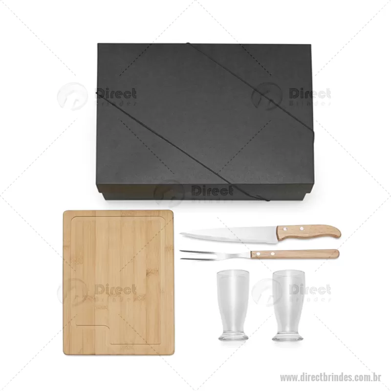 Conta com tábua em Bambu; Faca e garfo em Inox/Madeira; 2 copos em vidro. Tábua: 32 x 20 x 1,2cm Caixa Preta - 36,6 x 29,8 x 10 cm (AxLxP) RECOMENDAÇÃO DE PERSONALIZAÇÃO Uma gravação a Laser na tábua, na lâmina da faca, nos copos e na tampa da caixa. - Barato - DRTKTF004