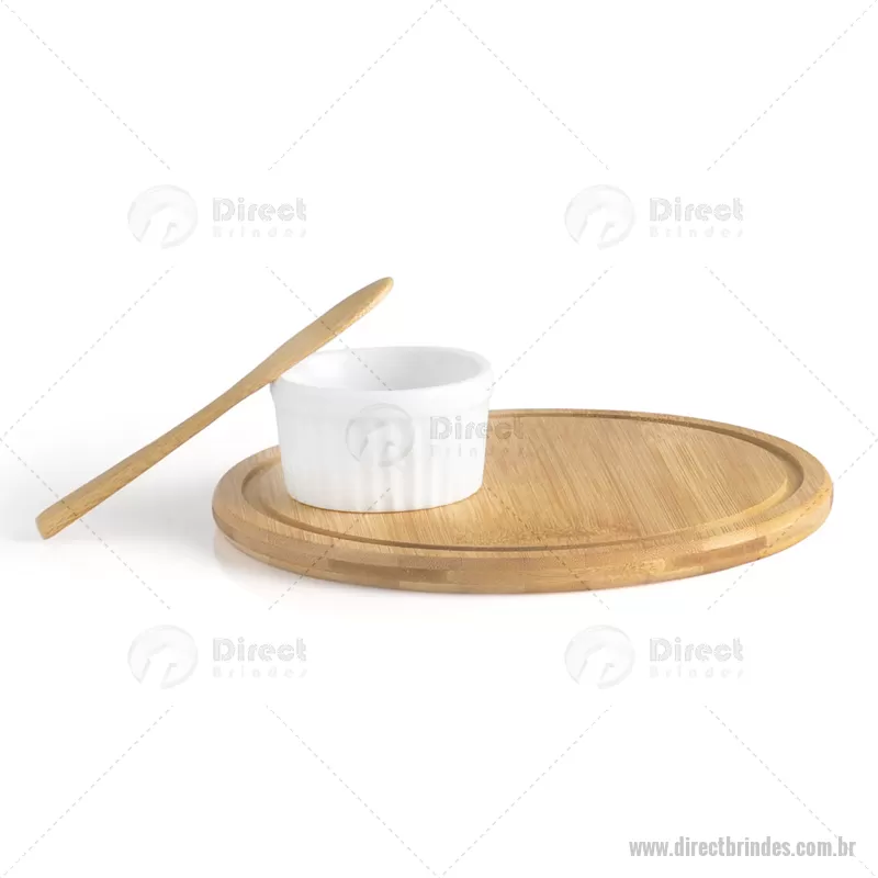 Conjunto Para Petiscos Em Bambu - 3 Pçs. Acompanha tábua e espátula em bambu, conta também com ramekin em porcelana. Dimensões do Produto Tábua: 21x1,2cm Embalagem Caixa Preta: 235x233x50 mm (AxLxP) Peso: 523 g (com embalagem) - Barato - DRTKGP015
