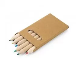 Caixa de papel cartão natural com 6 mini lápis de cor. Medidas do Produto: 4,5 x 9,0 x 0,9 cm. - Barato - DRTKIDS017