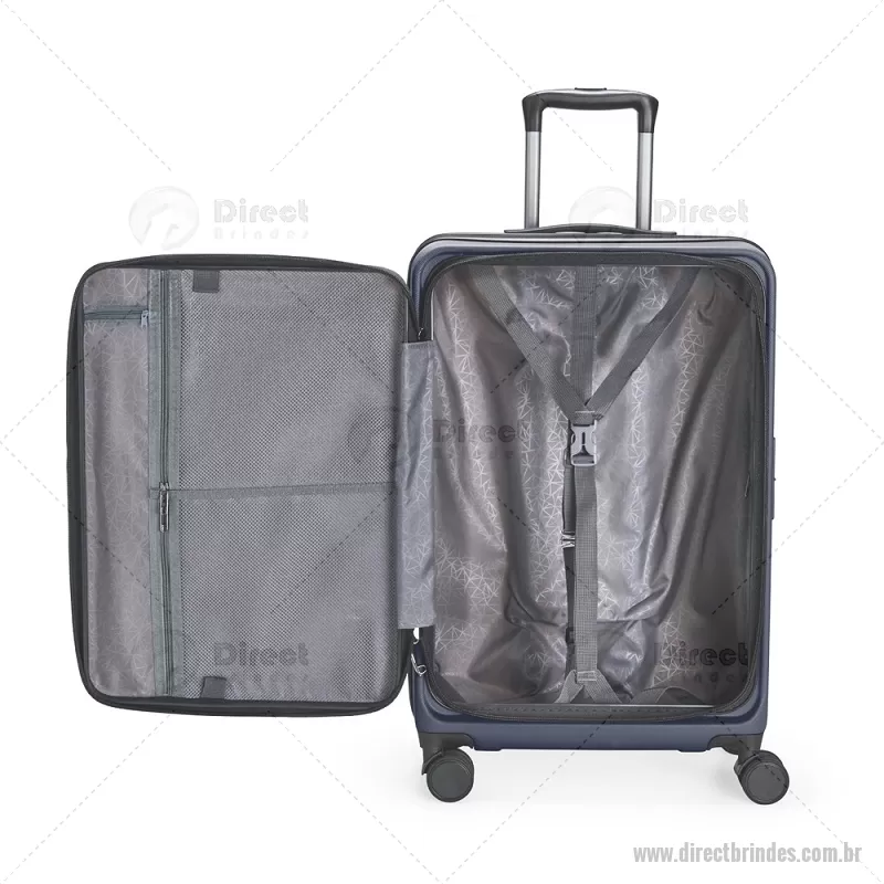 Mala de viagem com capacidade de 66 litros, fabricada em plástico ABS resistente e equipada com cadeado TSA embutido para maior segurança. Possui abertura frontal com compartimentos internos organizadores, zíperes e cinta compressora, além de zíper expansível que amplia o espaço interno. Conta com puxador retrátil de três níveis, duas alças de mão, apoios e ganchos laterais, além de rodinhas com giro 360° para deslocamento fácil. Acompanha plaquinha metálica grafite para personalização. - Barato - DRTMC250