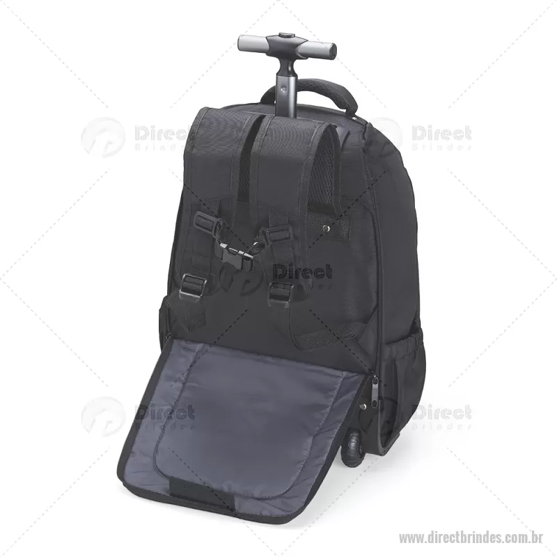 Mochila 27 litros com rodinhas e cadeado TSA. Possui padrão para bagagem de mão, conforme especificações ANAC (Agência Nacional de Aviação Civil) Confeccionada em nylon, contém alça revestida com espuma para um maior conforto, puxador retrátil com regulagem e botão acionador, alças para as costas escondidas no compartimento traseiro com zíper. Com 5 compartimentos, sendo um pequeno para carteira e canetas, dois medianos para documentos, bolsos nas laterais, bolso para notebook até 15,6 polegadas com divisórias para celular e forro com zíper. Possui duas rodinhas e freio em plástico, além de um sistema velcro para junção do compartimento das alças com a parte inferior, tampando as rodinhas enquanto transporta a mochila nas costas. - Barato - DRTMC199