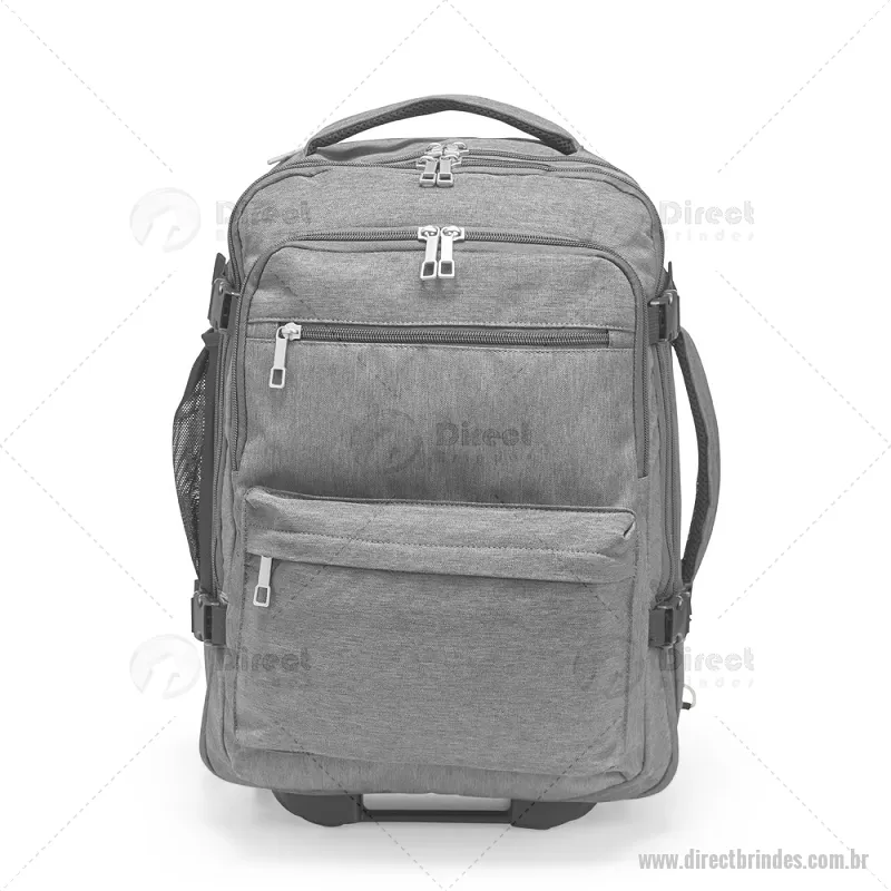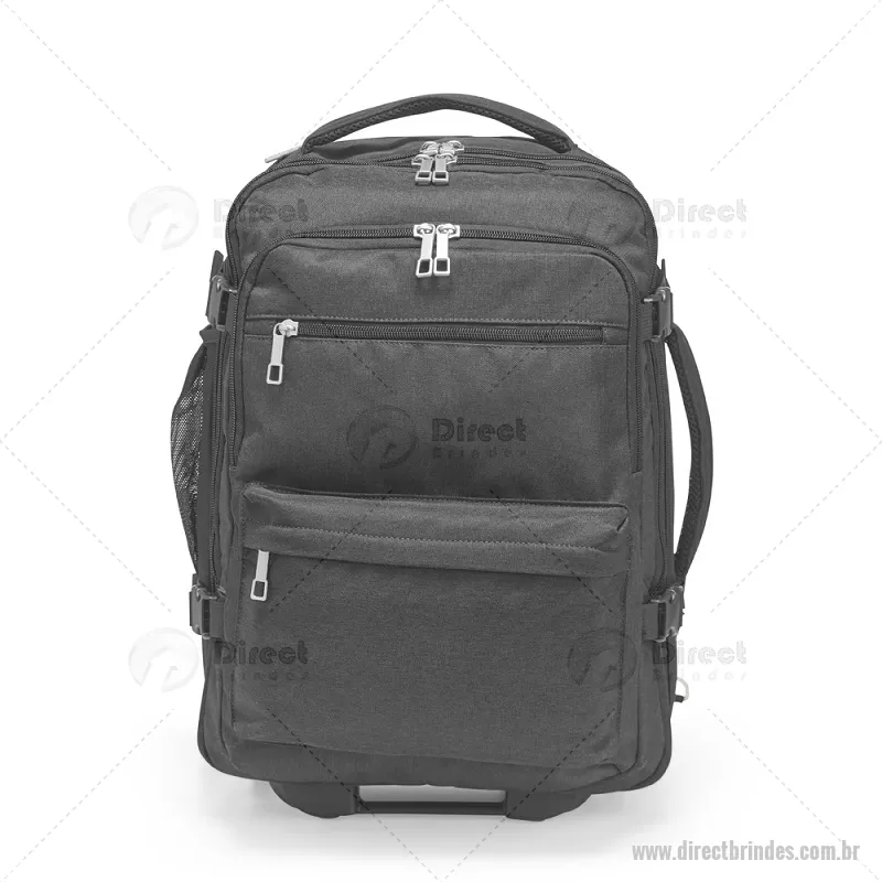 Mochila Poliéster 24L Mochila em poliéster impermeável com capacidade para até 24 litros. Possui compartimento interno principal com dois bolsos de fechamento em zíper e cinta compressora para roupas. Conta ainda com dois compartimentos frontais, sendo um deles com divisória para notebooks de até 15,6 polegadas, um par de bolsos menores com fechamento em zíper e um bolso lateral em tela de nylon. Dispõe também uma alça retrátil contida em um compartimento fechado em zíper e duas rodinhas para oferecer mais uma possibilidade de uso, além de duas alças de mão, uma na parte superior e outra na lateral, permitindo o transporte pela horizontal, e duas alças para as costas com revestimento em tecido acolchoado. Altura : 45 cm x Largura : 31 cm x Profundidade : 16 cm Peso aproximado (g): 2409 - Barato - DRTMC241