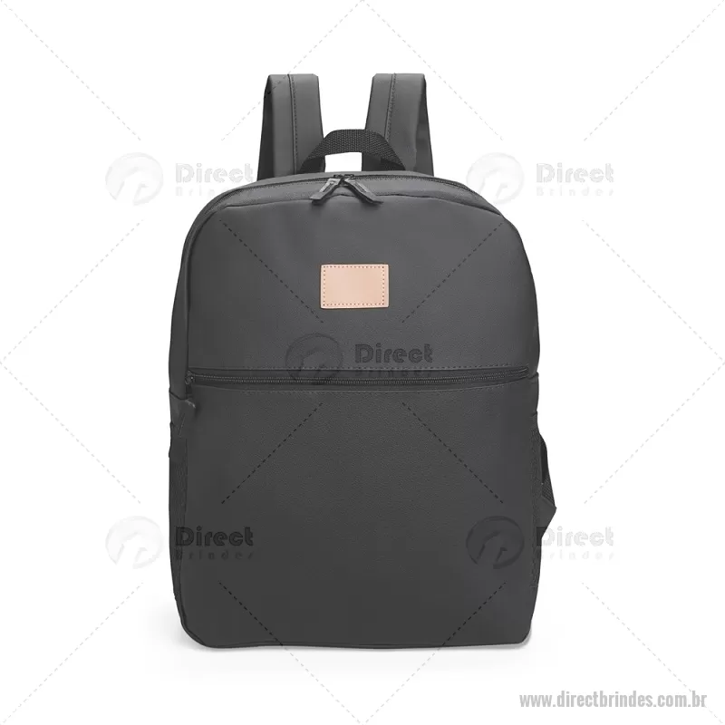 Mochila em couro sintético impermeável, com fechamento em zíper e capacidade de até 20 litros. Possui compartimento interno com divisória para notebook de até 14”, além de bolso frontal com plaquinha decorativa e dois bolsos laterais em tela de nylon. Prática e ideal para o uso diário. - Barato - DRTMC249