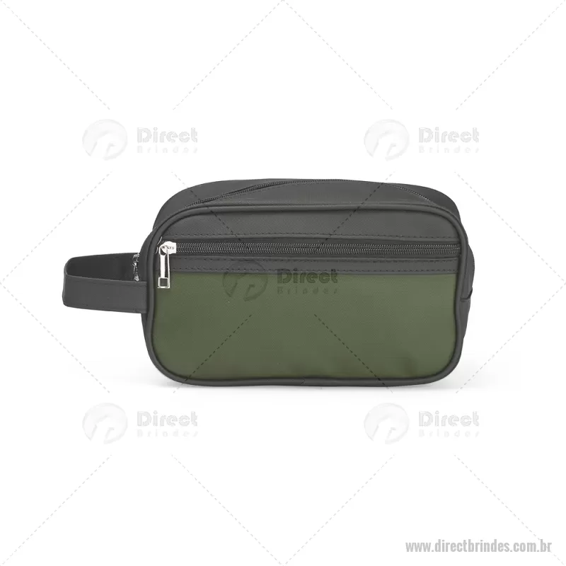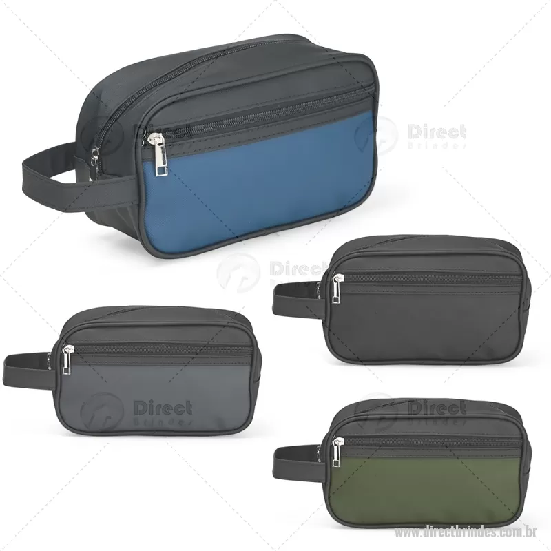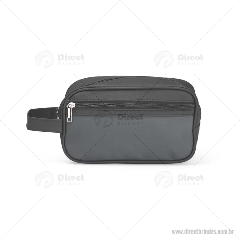 Nécessaire em couro sintético impermeável com fechamento em zíper. Possui bolso frontal também com zíper e alça lateral de mão. Altura : 14 cm x Largura : 24 cm x Profundidade : 9,5 cm Peso aproximado (g): 173 - Barato - DRTNC154