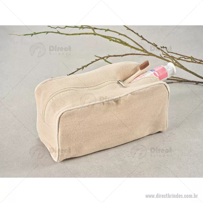 Nécessaire/ Bolsa de cosméticos em juco (mistura de algodão e juta, 260g/m²) em juco com interior forrado em 70% algodão reciclado e 30% poliéster reciclado Bolsa de cosméticos em juco (mistura de algodão e juta, 260g/m²) com interior forrado em tecido 70% algodão reciclado e 30% poliéster reciclado Rpet. Compartimento espaçoso com zíper. Medidas produto: 250 x 130 x 100 mm - Barato - DRTNC141