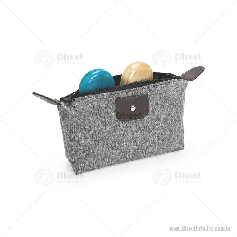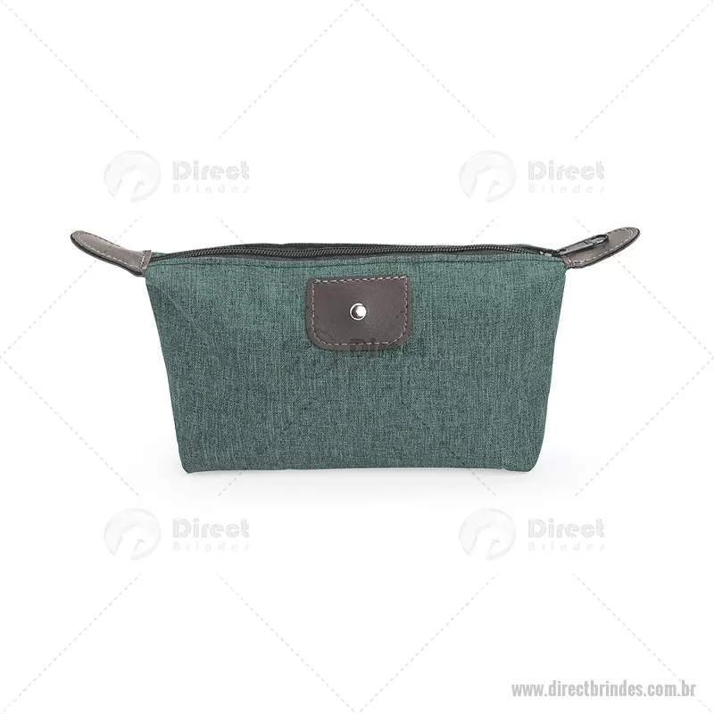 Nécessaire compacto em poliéster com mescla de PVC resistente à água. Possui fechamento em zíper e acabamento com detalhes em bidim e metal, oferecendo praticidade e um visual moderno para organizar pequenos itens do dia a dia. - Barato - DRTNC150