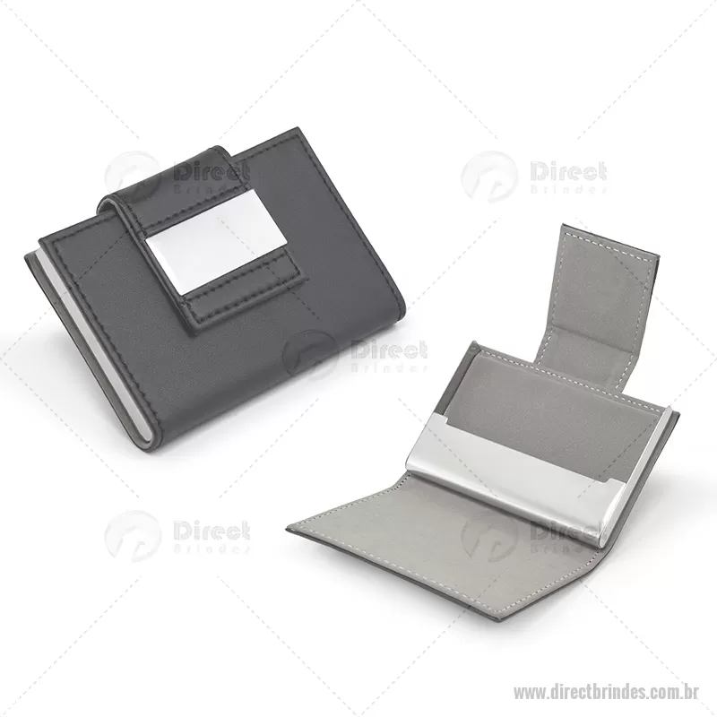 Porta cartão em couro sintético com detalhes em metal. Gravação em Laser. Ideal para armazenar e proteger seus cartões. - Barato - DRTPCA019