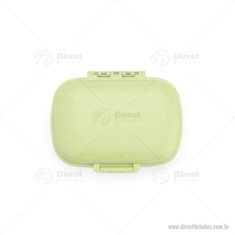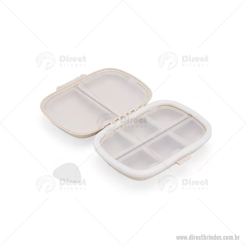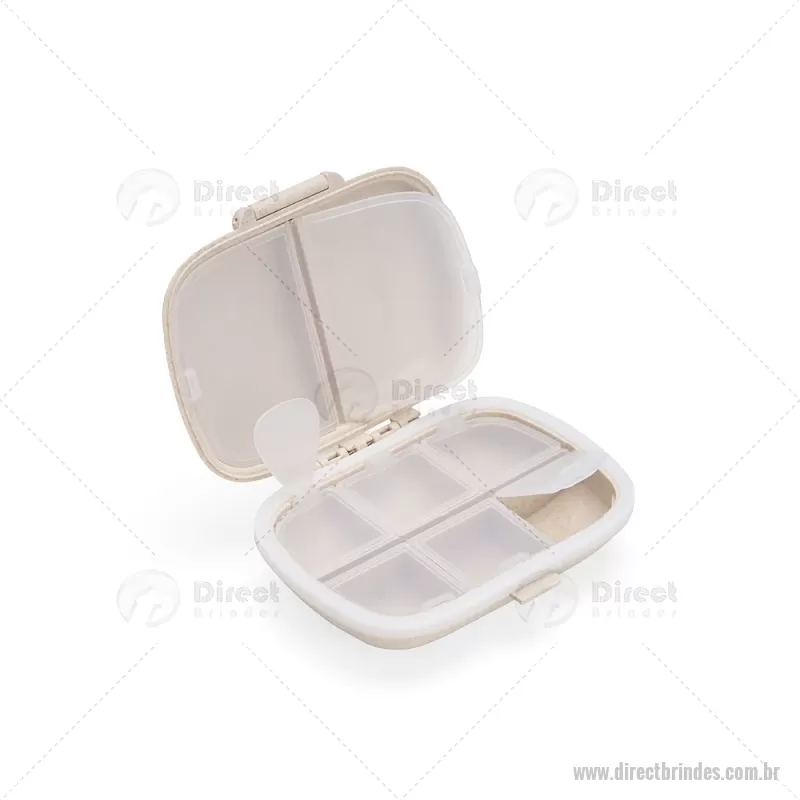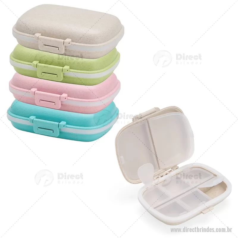 Porta-Comprimidos Plástico Porta-comprimidos compacto feito em plástico obtido da palha de trigo e anel de vedação para as bordas em silicone. Possui oito compartimentos com tampas removíveis, sendo dois maiores com capacidade de até 30ml e seis menores com até 10ml cada. Acompanha palheta multiuso. Largura : 8,6 cm x Espessura : 3,6 cm x Comprimento : 11 cm Peso aproximado (g): 72 - Barato - DRTPCP016