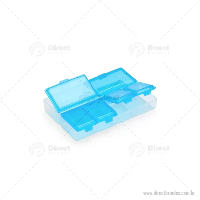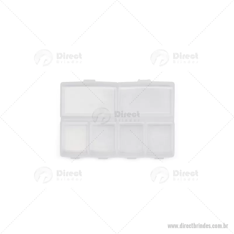 Porta-Comprimidos Plástico Descrição: Porta-comprimidos em plástico com seis compartimentos, dois maiores e outros quatro menores, oferecendo mais possibilidades de organização. Largura : 6,4 cm x Espessura : 1,9 cm x Comprimento : 9,5 cm Peso aproximado (g): 23 - Barato - DRTPCP015